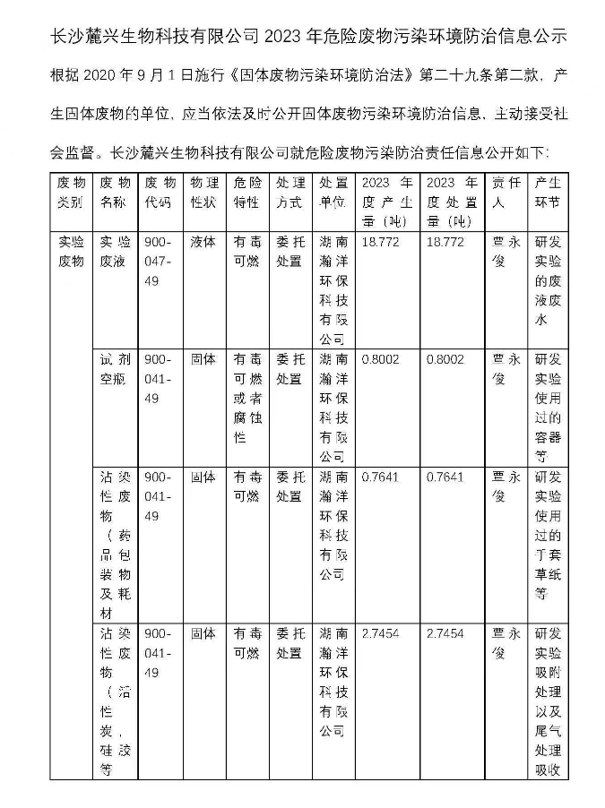 2023年危險廢物污染環(huán)境防治信息公示
