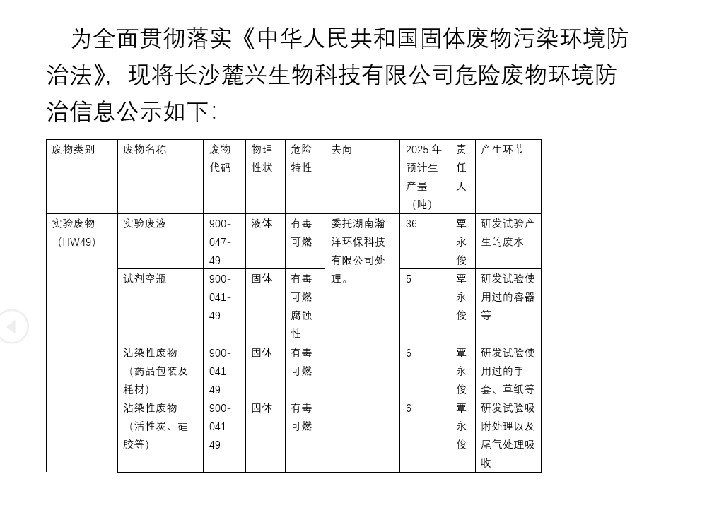 2025年危險(xiǎn)廢物污染環(huán)境防治信息公示